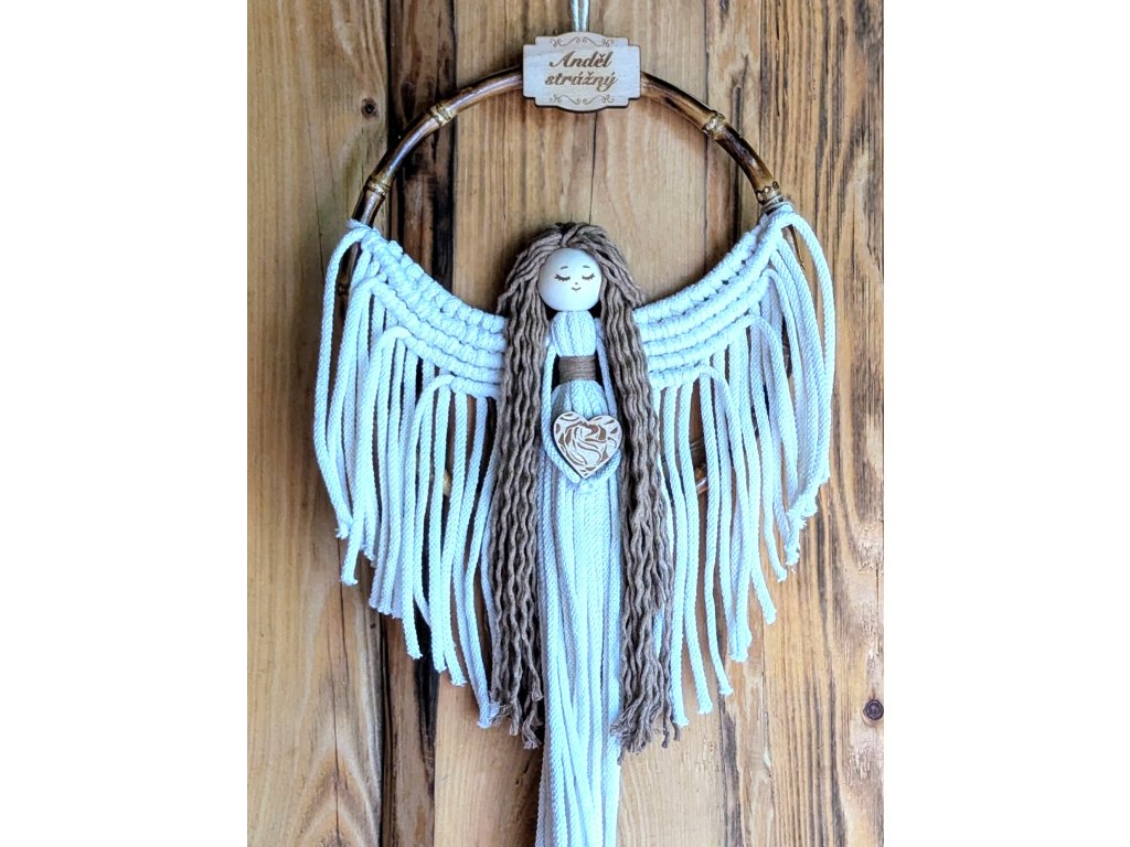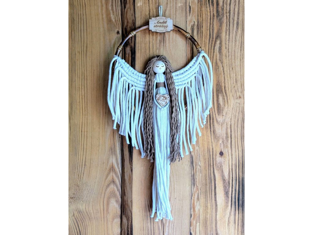 Macramé andělka přírodní s nápisem "Anděl strážný".