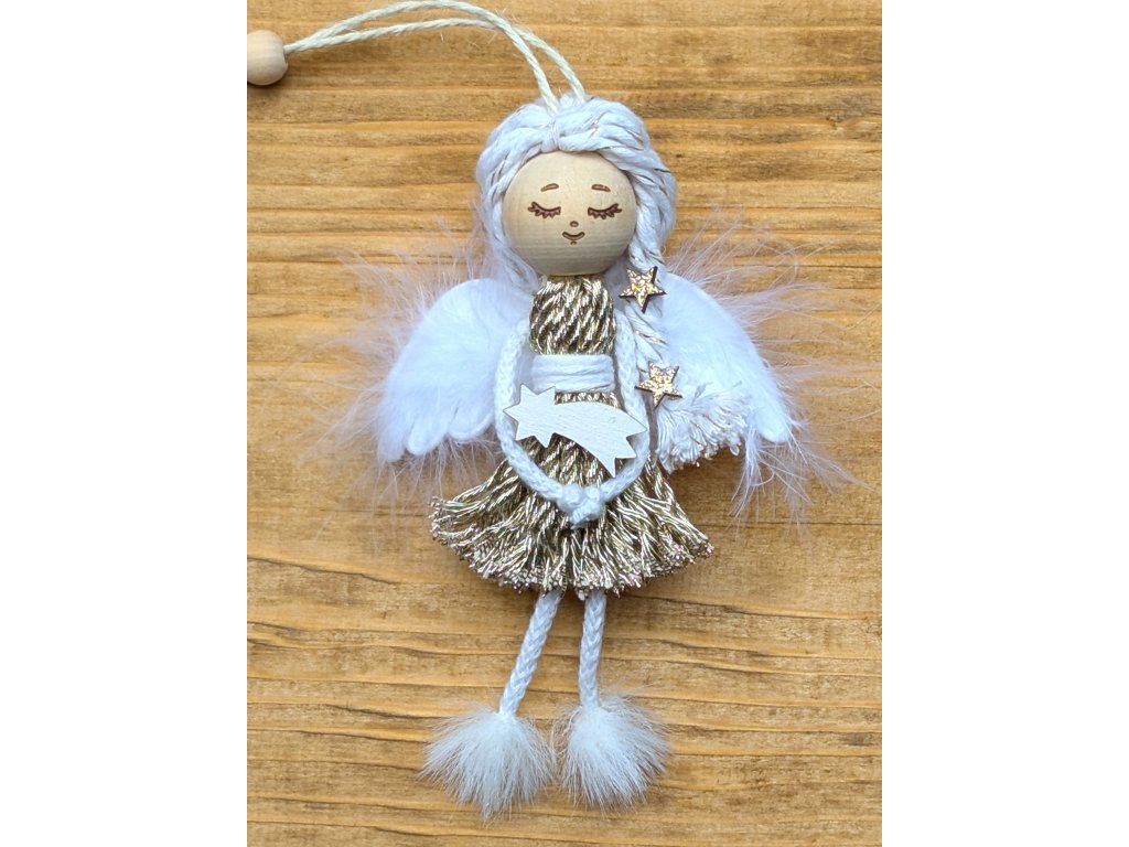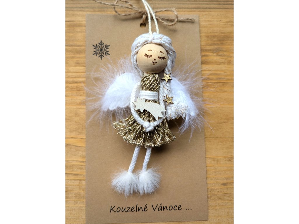 Andělka zlatá s bílými vlasy a ozdobami. Dárek / vánoční ozdoba.