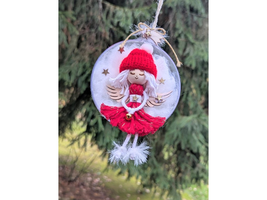 materiál: andělka: dřevo, bavlněná příze baňka: plast, duté vlákno